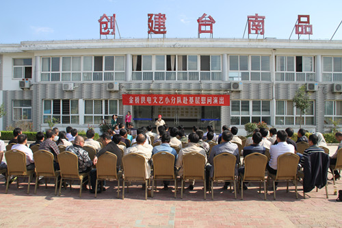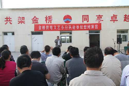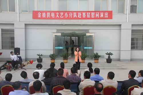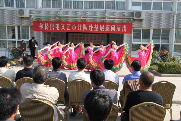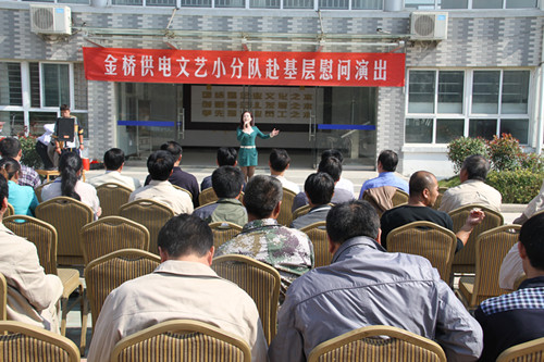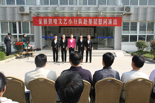 近日,為慶祝建國65周年,進(jìn)一步踐行黨的群眾路線(xiàn),豐富基層職工文化生活,公司工會(huì )組織文藝小分隊深入供電所等基層單位巡回慰問(wèn)演出,為一線(xiàn)職工送去精彩紛呈的“文化大餐”,贏(yíng)得了基層職工群眾一致好評。 在臨時(shí)搭建的舞臺上,文藝小分隊自編自演的的歌舞、相聲、詩(shī)朗誦、器樂(lè )彈唱等豐富多彩的節目,貼近基層,貼近生活,謳歌金橋供電十年成就,展示金橋供電職工風(fēng)采,贏(yíng)得了現場(chǎng)觀(guān)眾陣陣掌聲。中間還穿插了擊鼓傳花觀(guān)眾互動(dòng)節目,基層職工踴躍參與,氣氛活躍。最后,演出在會(huì )場(chǎng)全體人員齊唱《歌唱祖國》中圓滿(mǎn)落下帷幕。 公司自成立以來(lái),一直注重企業(yè)文化建設,利用多種形式活躍基層文化生活,滿(mǎn)足員工多層次、多角度的精神需求。不僅加強基層單位“職工小家”建設,建立了“職工書(shū)屋”、職工活動(dòng)室、乒乓球室、羽毛球活動(dòng)場(chǎng)地等基礎設施,還舉辦了職工運動(dòng)會(huì )、籃球賽和文藝演出等活動(dòng)。不僅發(fā)揮傳統職工文化活動(dòng)的優(yōu)勢,而且還創(chuàng )新具有時(shí)代特色文化活動(dòng)的形式,不斷增強員工的凝聚力和向心力。通過(guò)本次深入基層慰問(wèn)演出,不僅為戰斗在一線(xiàn)的基層職工獻上一份精神“大餐”,同時(shí)也展示了金橋供電的良好作風(fēng)和企業(yè)形象。(趙艷)