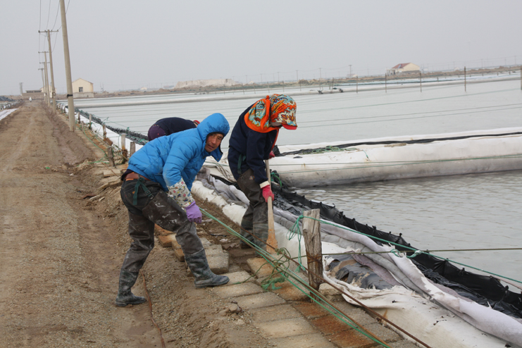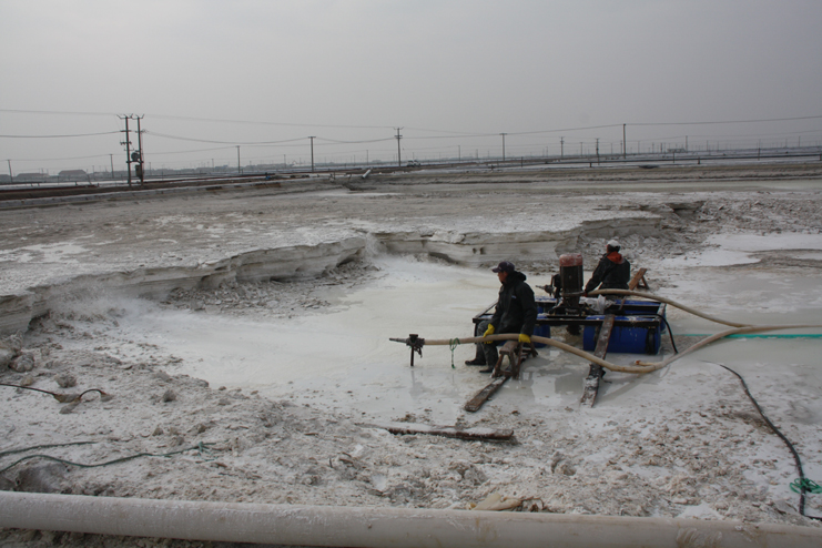 2月6日上午,在新河制鹽分公司的九班,我們看到工人們正在下馬格內和格,為盡快灌池生產(chǎn)打好基礎,在十班,工人有的正在清除硫酸鈣,有的修整結晶池埝,而在八班的灘頭,一臺挖掘機正在鹽廩上裝鹽銷(xiāo)售,日曬制鹽公司廣大員工掀起春季生產(chǎn)熱潮,處處都是忙碌景象。據了解,隨著(zhù)市場(chǎng)回暖,日曬制鹽公司的原鹽銷(xiāo)售較前兩年同期無(wú)論是在數量上,還是在價(jià)格上都有所增長(cháng)。為了抓住這一難得的銷(xiāo)售機遇,不斷擴大市場(chǎng)占有率,公司計劃組織兩個(gè)制鹽分公司在近期開(kāi)展扒鹽工作,以確保原鹽銷(xiāo)售工作不中斷。為此,各生產(chǎn)單位緊緊圍繞這一工作重心,在抓好日常生產(chǎn)的同時(shí),精心做好扒鹽前的各項準備工作,努力確保扒鹽工作正常有序開(kāi)展。與此同時(shí),部分尚不具備扒鹽條件的班組則抓緊時(shí)間做好除硫池清理、撤格池板的整平以及土工布更換等工作,為春季生產(chǎn)做好各項準備工作。(封楊)