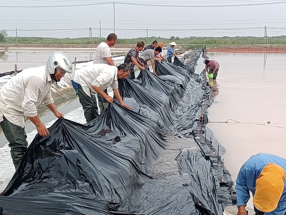 隨著(zhù)主汛期到來(lái),由于各班組部分塑布已達使用年限,老化嚴重,且容易造成鹵水跑漏現象發(fā)生,為了減少鹵水損耗,7月10日,新河制鹽分公司黨支部組織黨員突擊隊到班組對到期塑布進(jìn)行更換。