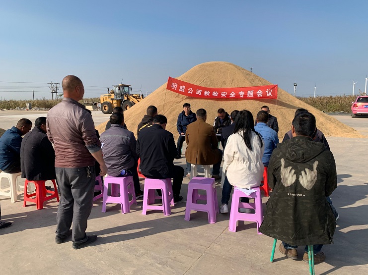 11月8日,明威公司在二灣分公司稻谷曬場(chǎng),召開(kāi)秋收安全生產(chǎn)工作專(zhuān)題會(huì )議。分析當前安全生產(chǎn)工作形勢,部署秋收期間安全生產(chǎn)工作。