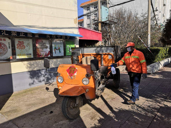 “回家吃完早飯再繼續清掃!”——多么樸實(shí)無(wú)華的聲音從環(huán)衛工人戴著(zhù)口罩的笑容下發(fā)出,這是來(lái)自生產(chǎn)生活服務(wù)中心環(huán)衛班組的響亮聲音。