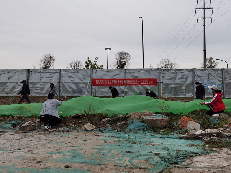 4月20日,為創(chuàng )造干凈衛生的發(fā)展環(huán)境,豐富黨史學(xué)習教育形式,翔立分公司黨支部、海州灣公司黨支部聯(lián)合開(kāi)展“黨史教育錘黨性環(huán)境整治我先行”主題黨日活動(dòng),將黨史學(xué)習和創(chuàng )衛活動(dòng)有機結合起來(lái),組織黨員對公司的車(chē)站小灘進(jìn)行環(huán)境整治,為裸露在外的土地進(jìn)行防塵網(wǎng)鋪設?,F場(chǎng)風(fēng)沙彌漫,塵土飛揚,經(jīng)過(guò)兩個(gè)小時(shí)的努力,鋪設的防塵網(wǎng)有效防止了因大風(fēng)天氣造成的二次揚塵。質(zhì)勝于華,行勝于言,學(xué)史力行是明理、增信、崇德的落腳點(diǎn),是開(kāi)展黨史學(xué)習教育的關(guān)鍵環(huán)節。