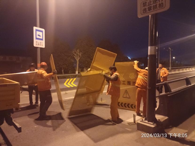 通過(guò)3個(gè)多小時(shí)的連續作業(yè),順利完成馬山立交橋兩側圍擋安裝工作,為城市按下了“安全”鍵。