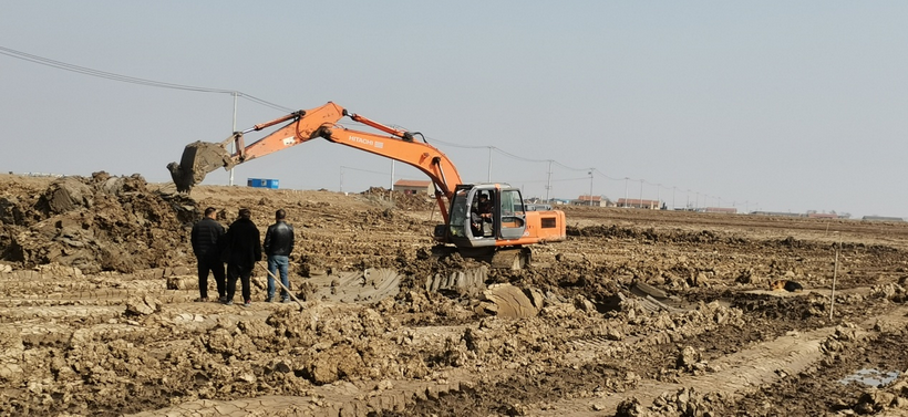 ▲3月23日養殖戶(hù)對養殖池塘機械施工