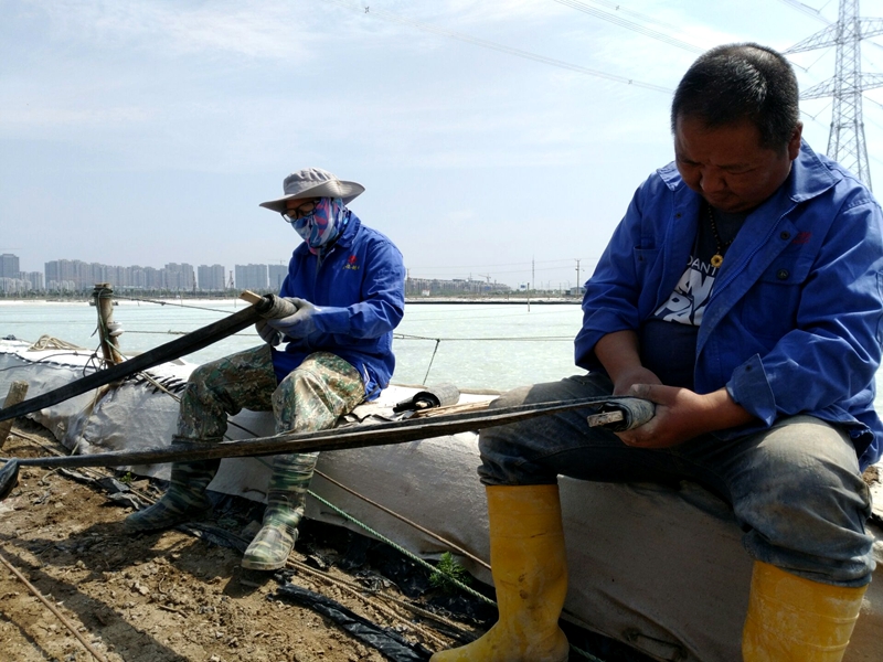大浦工區更換塑池浮板確保鹽產(chǎn)量