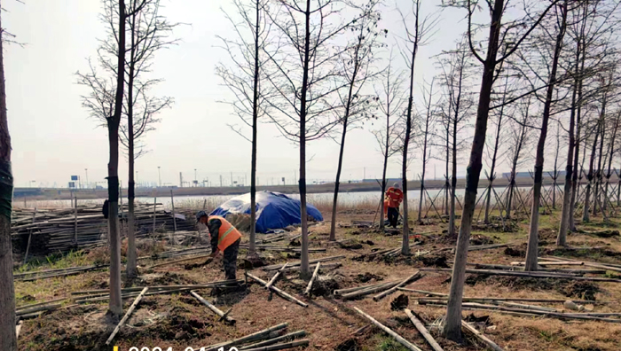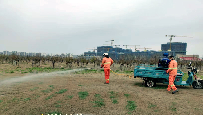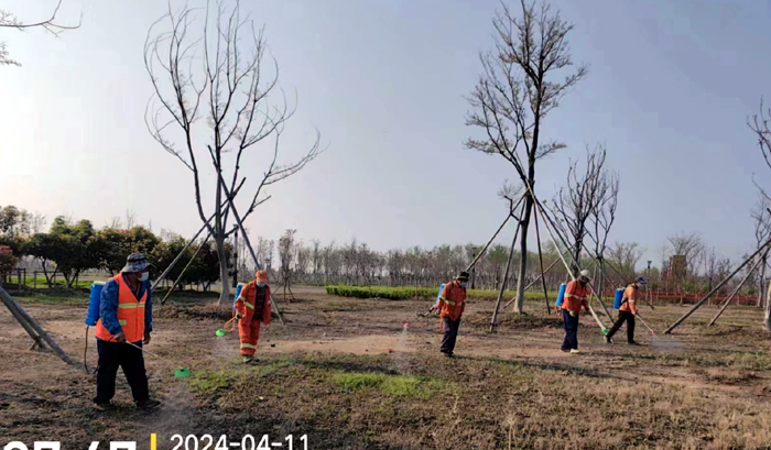 積極澆灌返青水。當前,地溫回升快,苗木易萌芽,該班組采用“人工+機械”相結合的方式,全面啟動(dòng)返青水集中澆灌工作,重點(diǎn)對園區喬木、果木、草坪等進(jìn)行全面灌溉,促進(jìn)苗木、草坪返青發(fā)芽。按照分種類(lèi)、合理澆灌的原則,采取集中澆灌的方式最大限度減緩晝夜溫差對綠化植物的影響,入春后共澆水100余次,對落羽杉圓動(dòng)力灌根2000棵,對大樹(shù)澆水1500棵,綠化澆水約30000平方米。