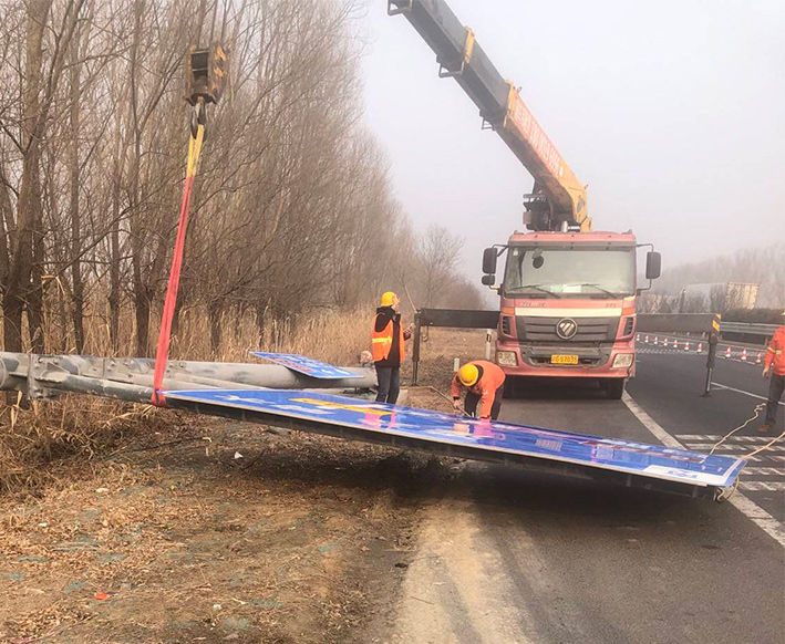 1月12上午,市政道路養護人員在巡查中發(fā)現,S242交叉路口北側交通標示牌存在重大交通安全風(fēng)險,經(jīng)查看,發(fā)現標志牌基座螺栓已斷三根。該公司立即組織維修人員到達拆除現場(chǎng),工作人員在標志牌四周擺放警示標志,設置安全作業(yè)區,一名隊員則擔當起臨時(shí)交警,引導過(guò)往車(chē)輛有序通行。因標志牌較大,先期利用機械先將其固定住,隨后工作人員對基座和標志牌進(jìn)行拆除分解,整個(gè)過(guò)程分工明確,準備充分,經(jīng)過(guò)近2個(gè)小時(shí)的緊張施工,迅速完成拆除工作。10時(shí)許,工作人員并對附近另一塊大型交通標志牌進(jìn)行扶正并進(jìn)行加固。此次拆除行動(dòng)共出動(dòng)隨車(chē)吊機一臺、登高車(chē)一臺、工作人員8人次,安全拆除標志牌一塊,扶正、加固標志牌一塊,確保了交通暢通和行車(chē)安全。