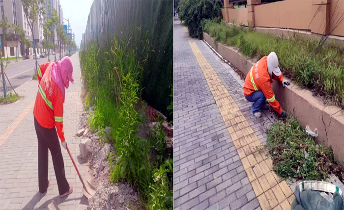 ? ? ? 道路保潔“無(wú)所畏懼”。 黑色柏油馬路上,熱浪滾滾,橙色工作服在強烈陽(yáng)光照耀下顯得格外引人注目。女子班,228班組保潔人員在班長(cháng)龔飛、姚功帶領(lǐng)下,肩背除草機,雙手緊握長(cháng)長(cháng)的操作手柄,高速旋轉的打草帶,將雜亂草葉打斷、甩開(kāi),不一會(huì ),就“收割”上海路生活區周邊雜草20多處;人工清掃裝運施工車(chē)輛拋灑石子、泥土30余車(chē),擦洗站臺座椅30多個(gè),清掏果皮箱200余只,盡心盡職完成突擊保潔任務(wù)。
